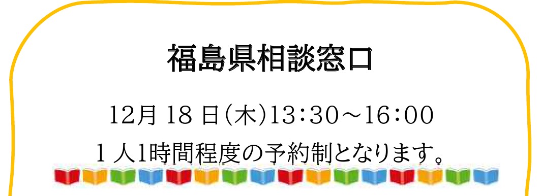 村山地域 被災者向け 避難者向け 2025年 12月 18日(木曜日) 13:30~ 福島県相談窓口 主催:福島県避難者支援課 場所:山形市避難者交流支援センター(山形国際交流プラザ ビッグウィング2階) お問い合わせ 山形市避難者交流支援センター TEL:080-2807-7591 添付ファイル
