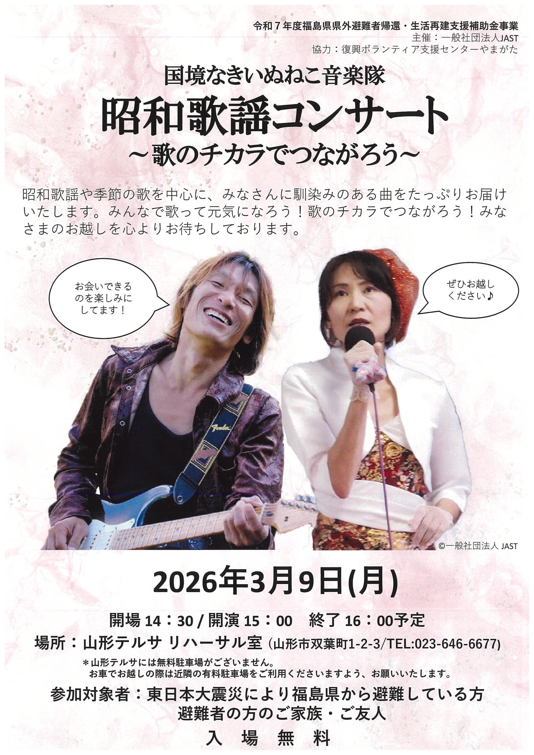 場所:山形テルサ リハーサル室(山形市双葉1-2-3)