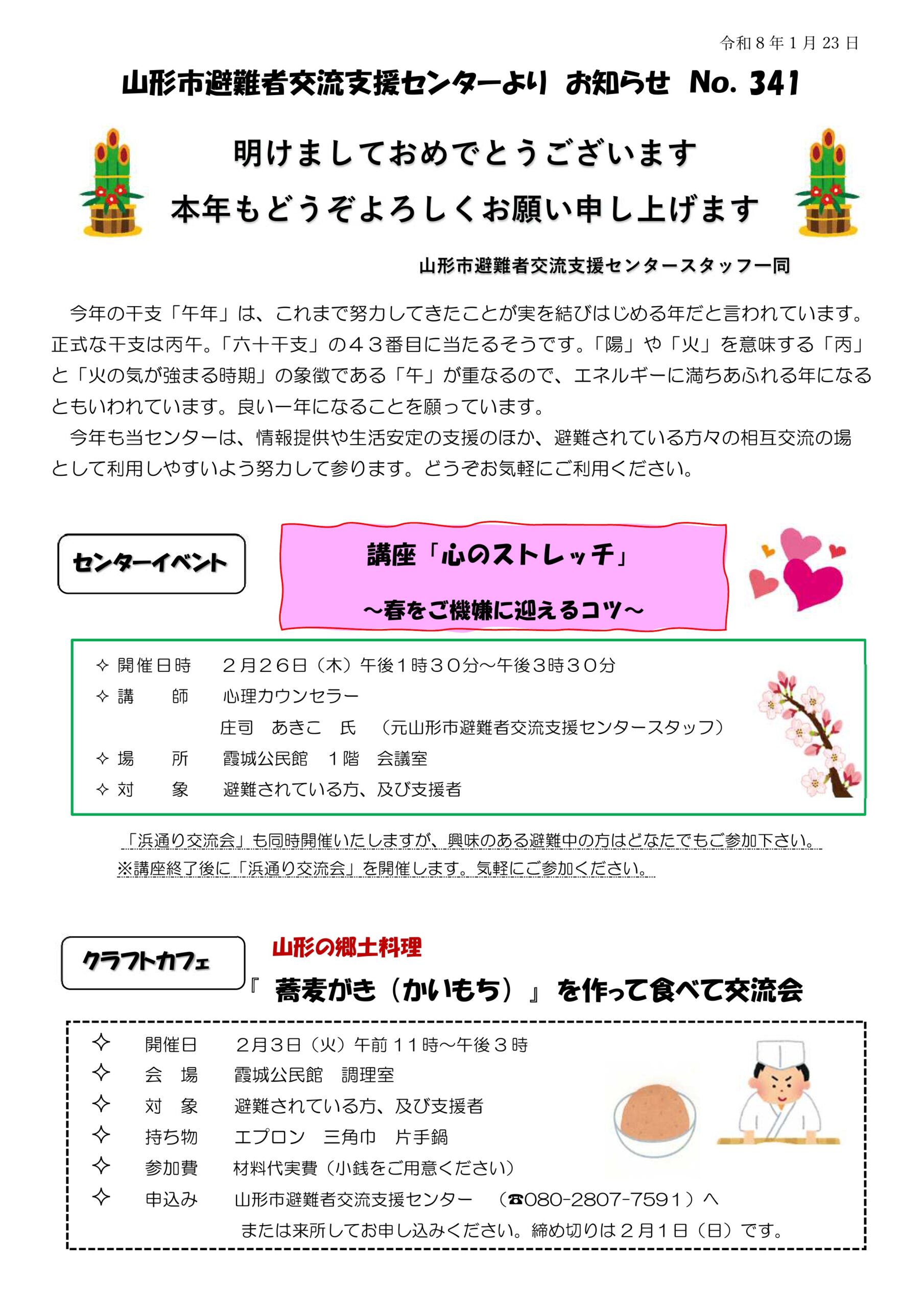 山形市避難者交流支援センターよりお知らせ NO.341