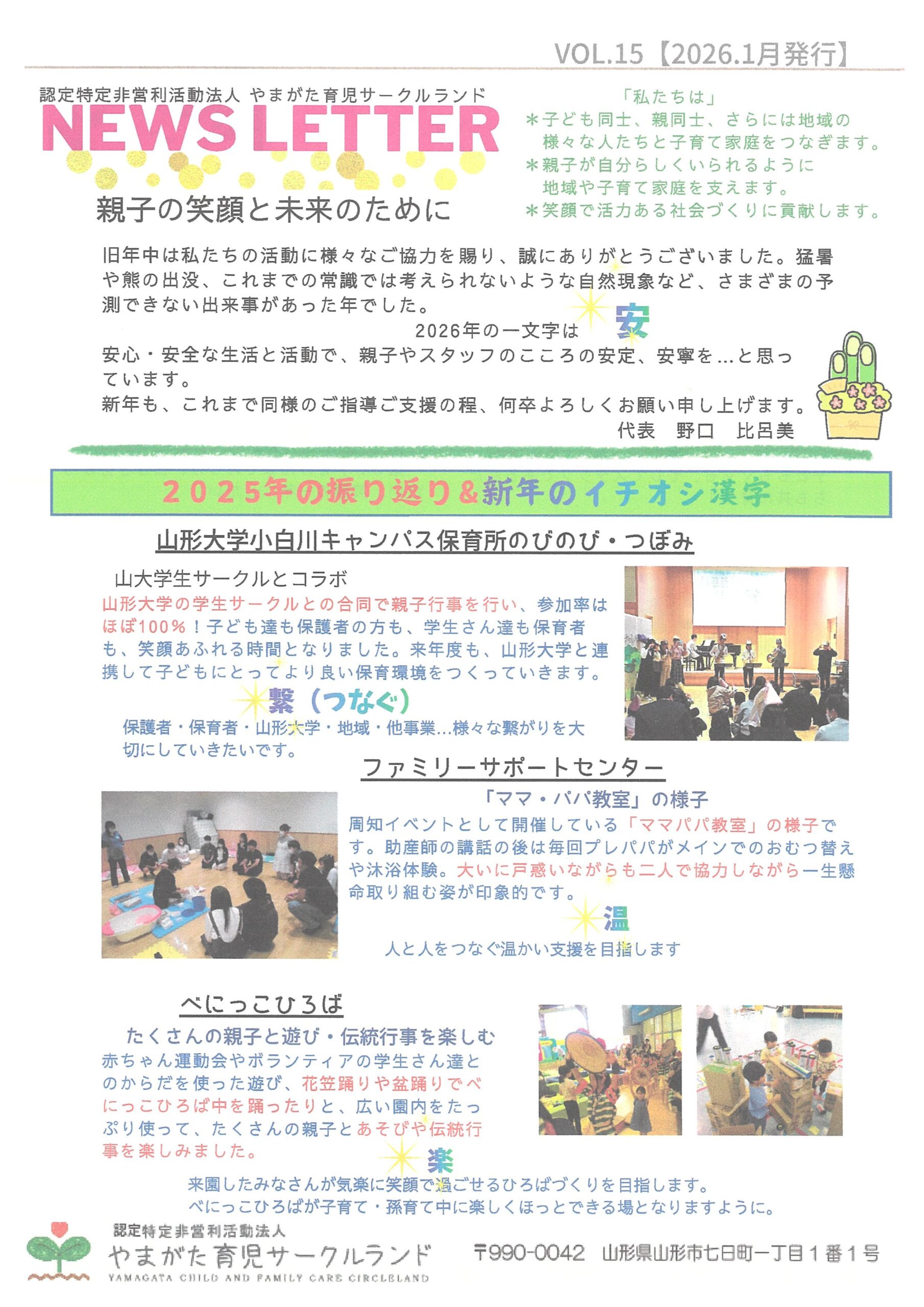 やまがた育児サークルランド NEWS LETTER VOL.15