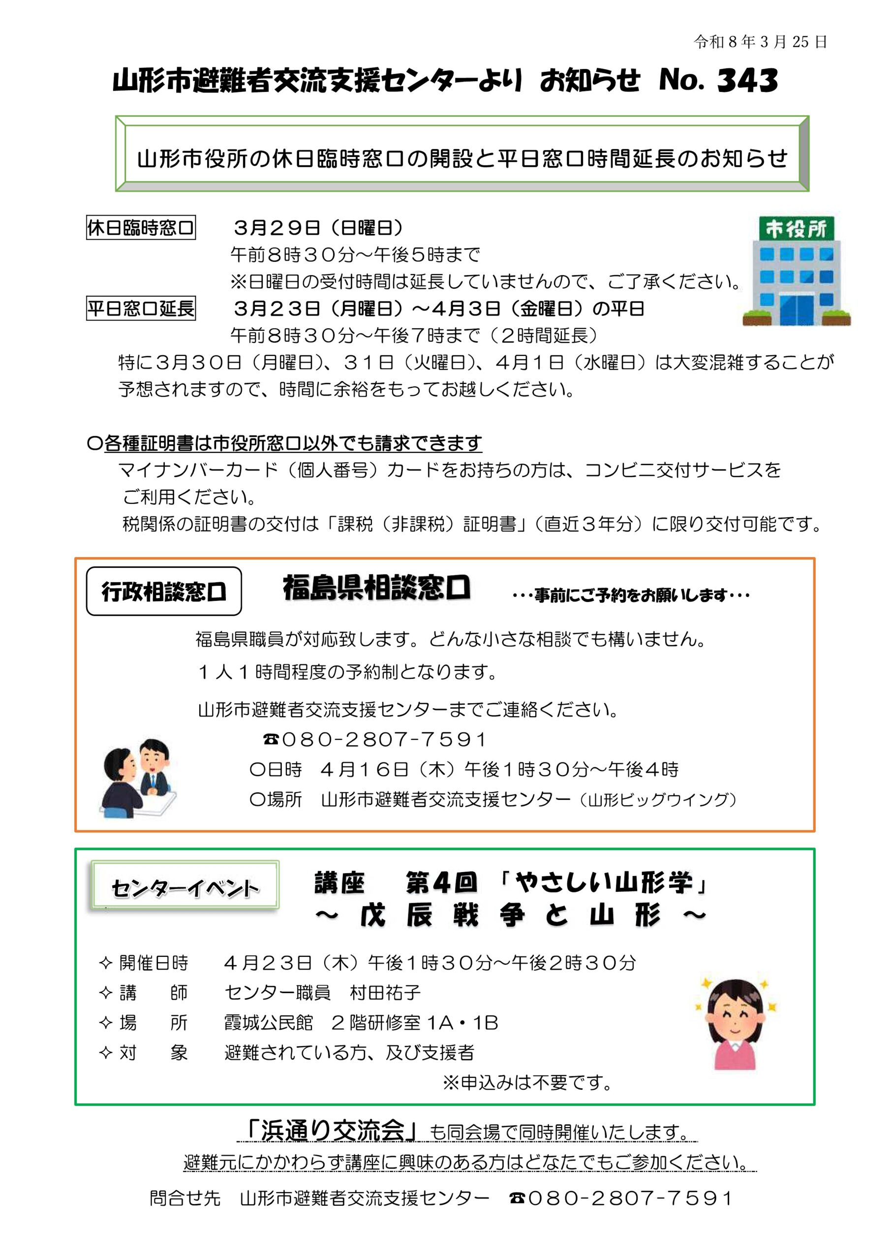 山形市避難者交流支援センターよりお知らせ NO.343